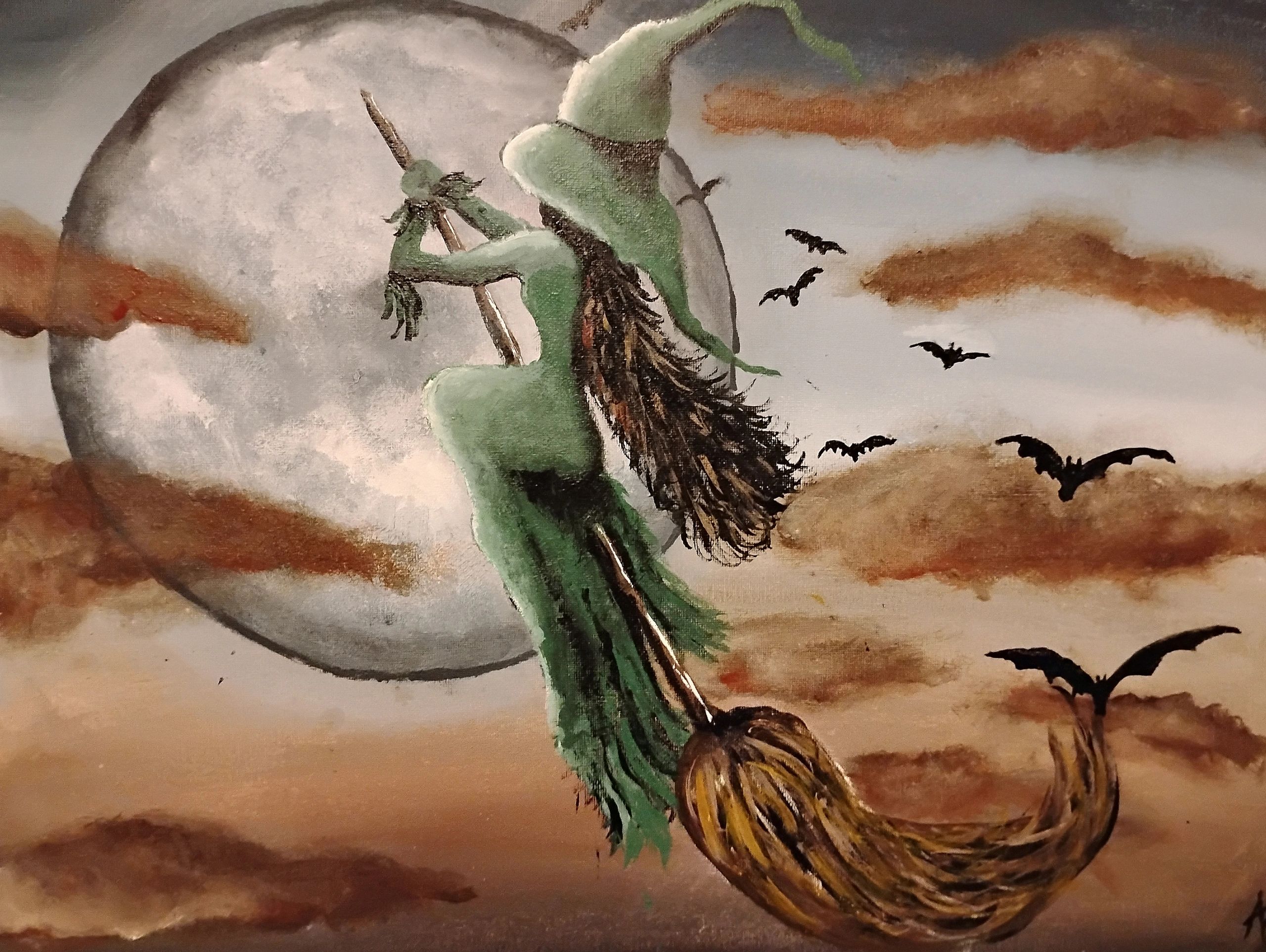 Join us and you will be guided to create this 16" X 20" acrylic painting "Moonflight"
