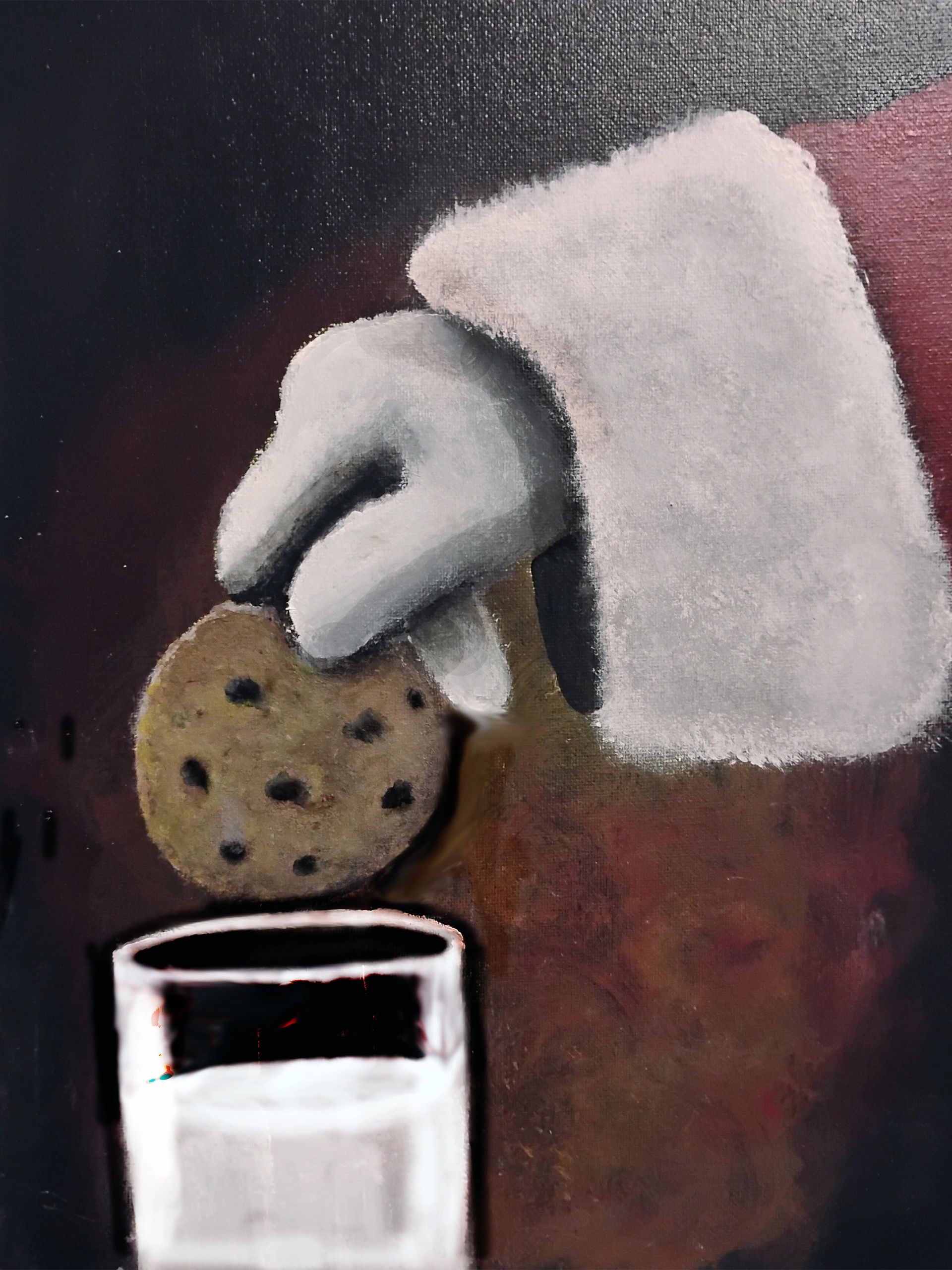 Join us and you will be guided to create this 16" X 20" acrylic painting "Santa's Treat".